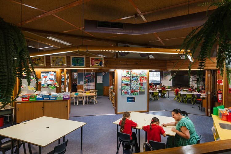 - each classroom pair features shared toilets, a locker room, breakout areas, and a wet zone for activities like painting. Internal and external walls can be opened to create adaptable learning spaces.